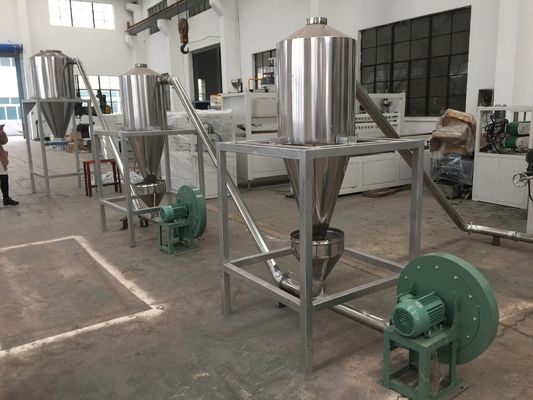 Rohes material+-Zusatz → mischendes →, das Fütterungs→ Trichter Fütterungs→ konisches Doppelschneckenextruder → heißes Gesicht schneidet → Zyklonenscheider → Erschütterungssieb → Schlagsystem → Speichertrichter → Endproduktverpackung übermittelt